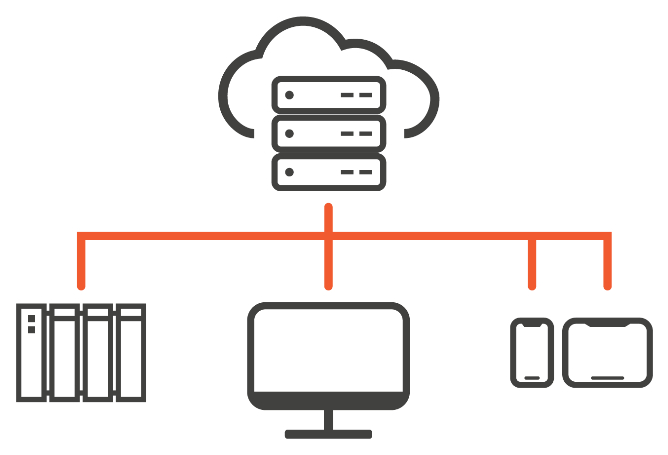 A central server handles resources, user access, and security policies, simplifying updates and maintenance.